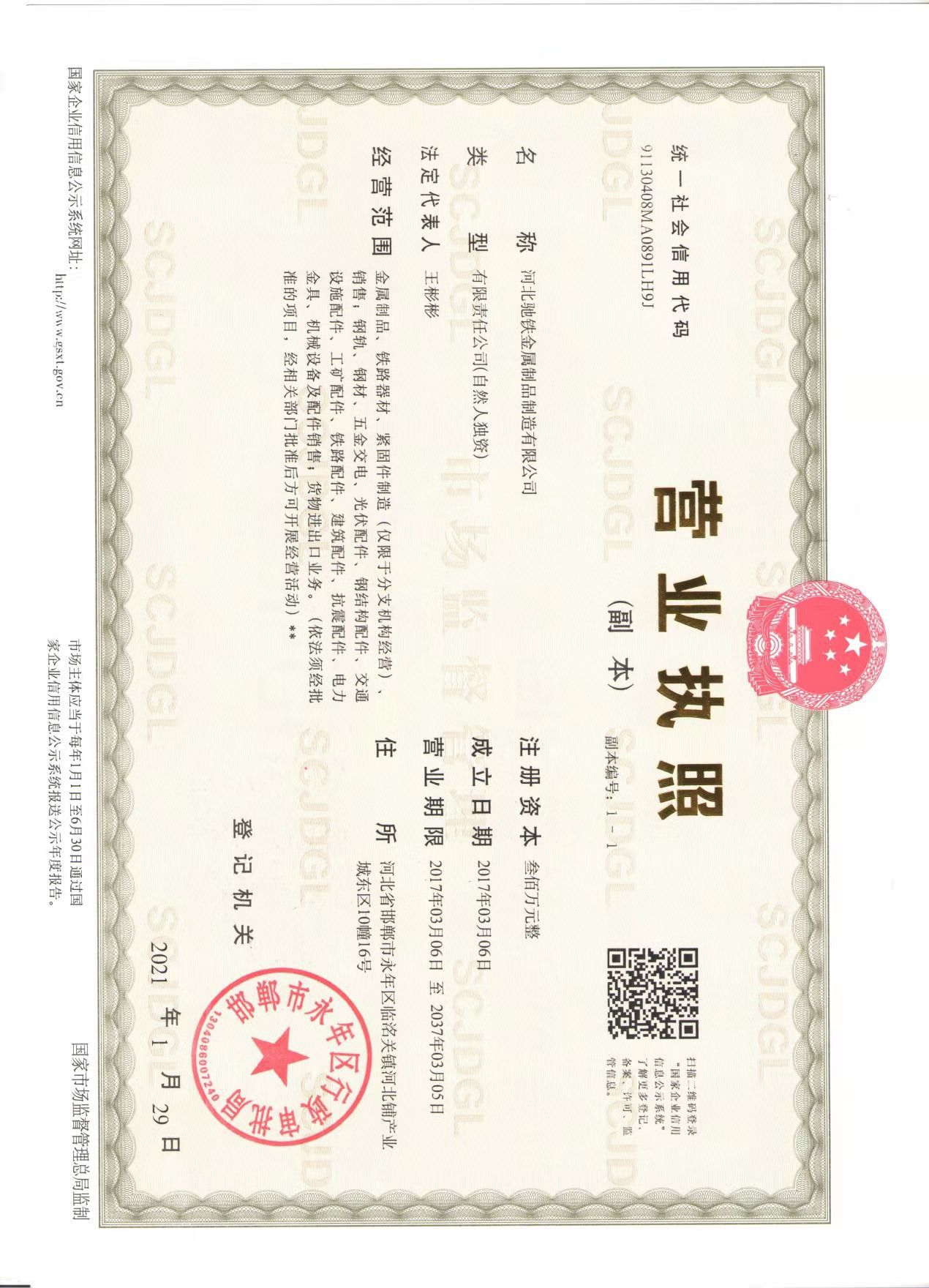 河北馳鐵金屬制品有限公司 地址:河北省邯鄲市永年區(qū)河北省邯鄲市永年區(qū)西段莊村西